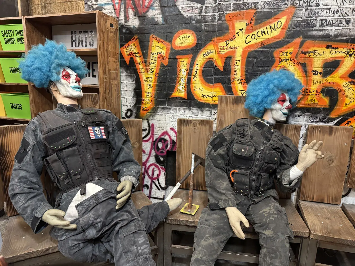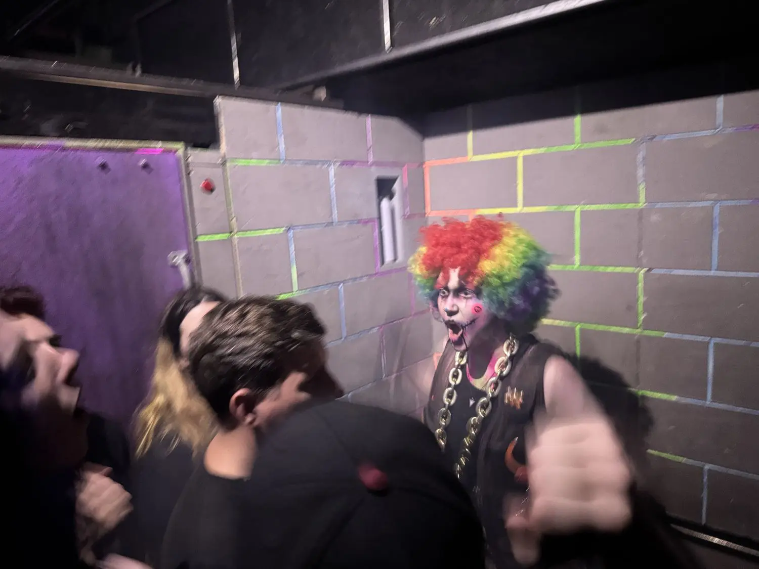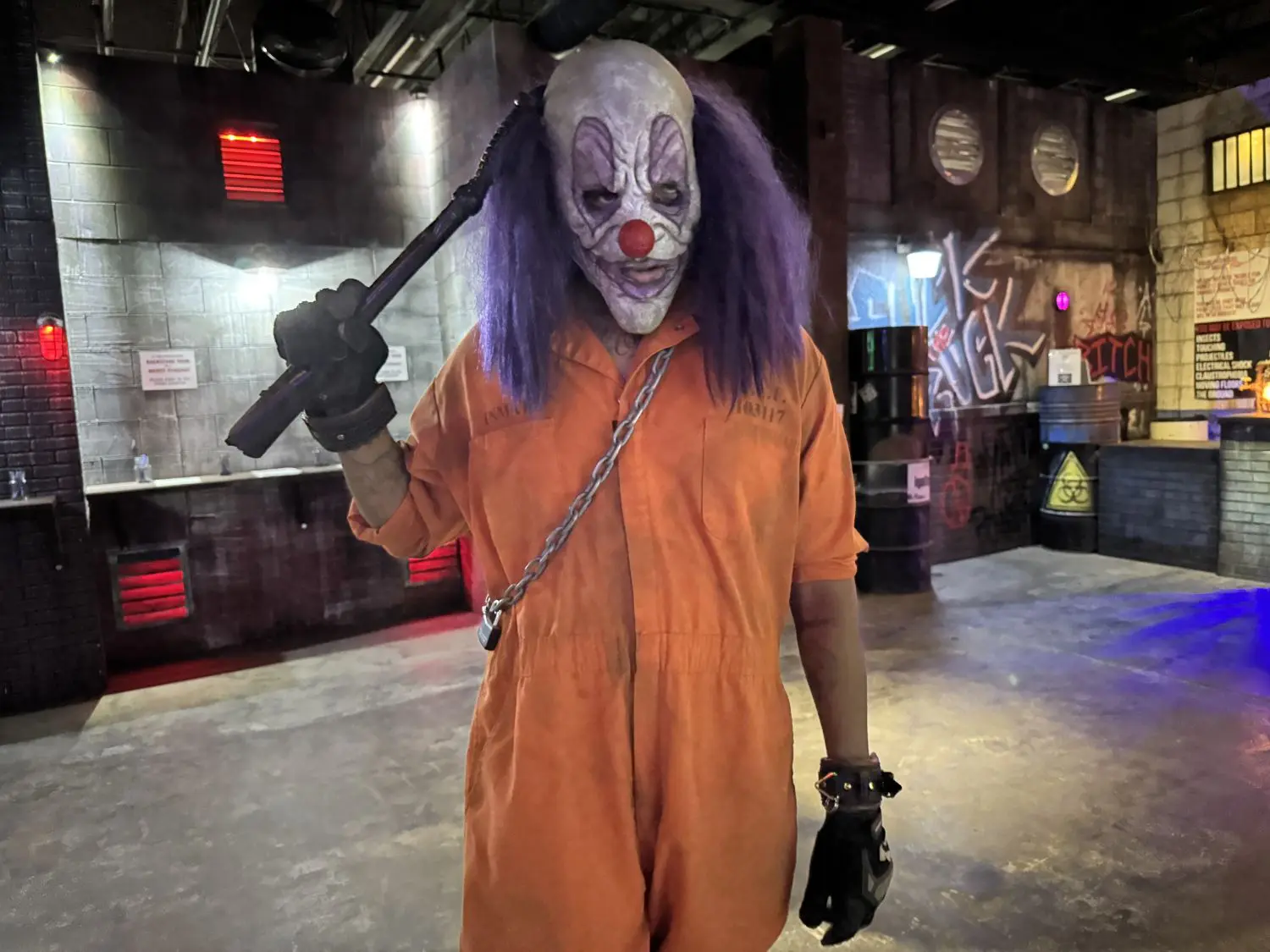 The tumbler room that spins 360 degrees with guests and clown characters inside, requires visitors to navigate the room with each turn as the scare actors guide them. It tests guests’ sense of up and down, and coordination skills.