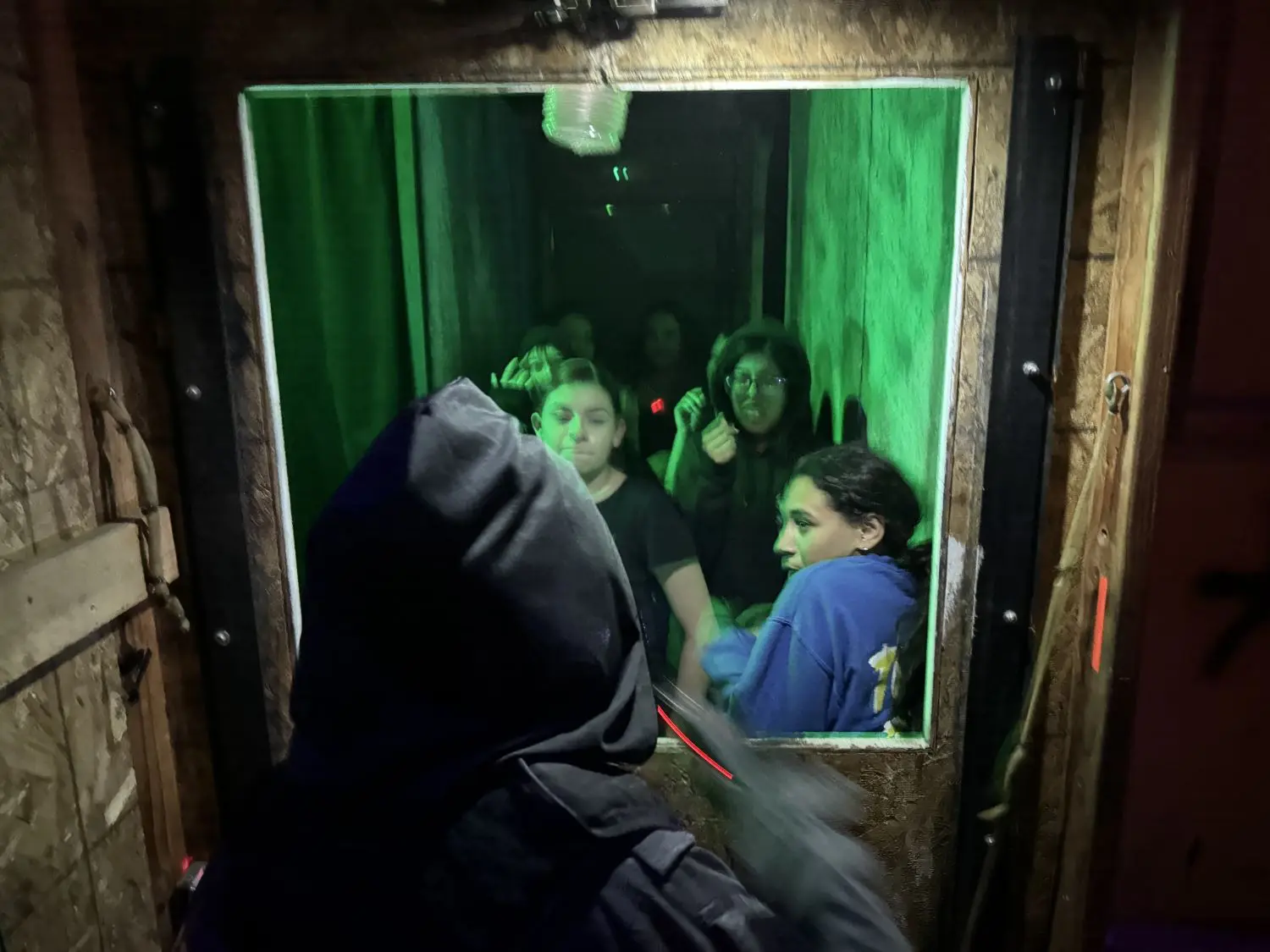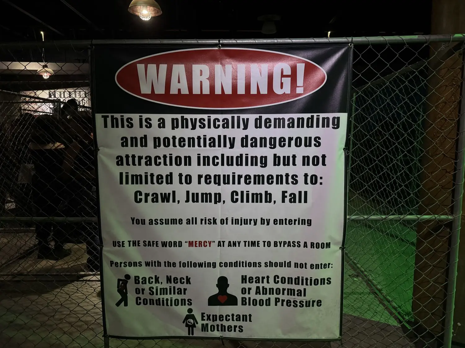The 17th Door experience is timed and takes about 35 minutes from start to finish. It does have a safe word: mercy. The safe word can be used if guests want an actor to back off, if they want to leave the room, bypass a room or leave the attraction entirely. But there are three rooms guests can’t mercy out of once they have entered — so they must say it before entering. Actors will let guests know which rooms those are in the course of the experience.