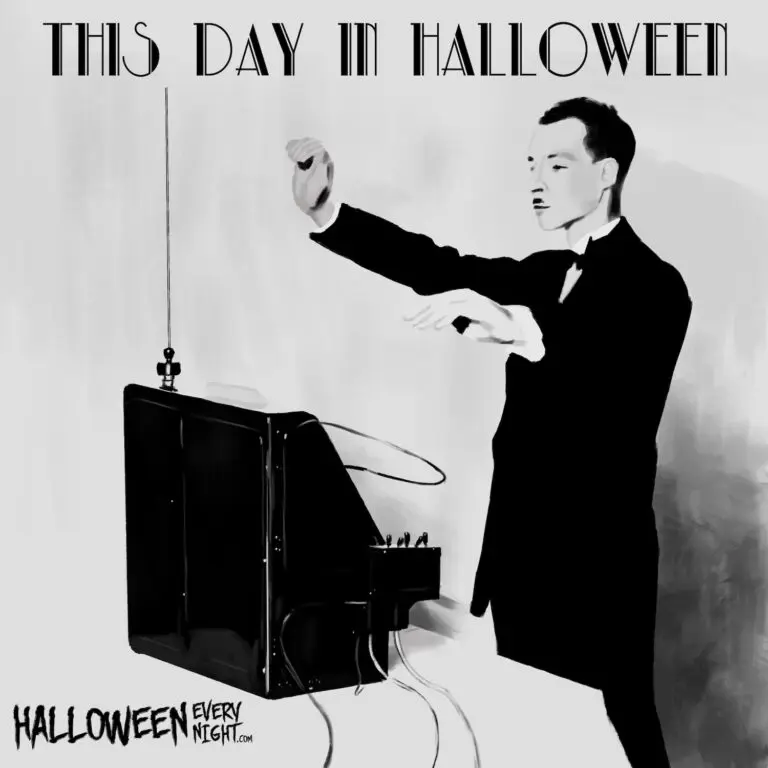 This Day in Halloween: Lev Sergeyevich Termen AKA Leon Theremin patents the Theremin musical instrument in the U.S. in 1928. / Illustration by Brandon Chi