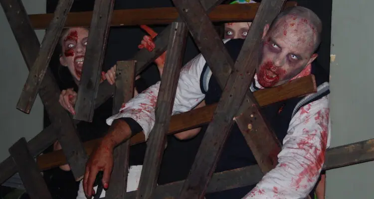 One of the regular zombies is played by actor and friend of Newell, Joe Sanders. He and Newell (and Newell’s wife, Heidi, who does the costumes) are the only ones who have survived the entire 10-year run. And it’s now become generational. Sander’s young daughter has joined the cast and an idea by Newell’s son adds a nice gag to the finale.