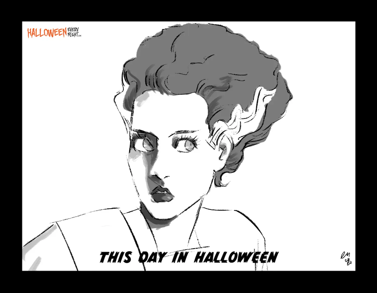 This Day in Halloween: "The Bride of Frankenstein" starring Boris Karloff and Elsa Lanchester as The Bride premieres in Chicago, San Francisco, and Portland, Oregon in 1935. / Illustration by Ari Fuyumuro