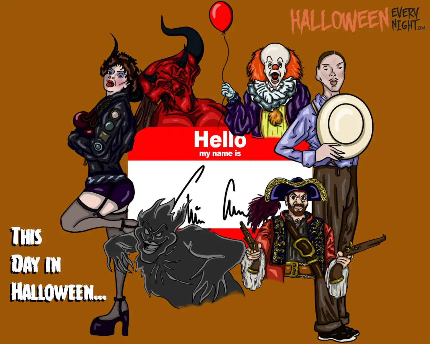This Day in Halloween: British actor/singer Tim Curry -- star of "The Rocky Horror Picture Show" -- is born in Grappenhall, England in 1946. / Illustration by Cheyenne Knehans