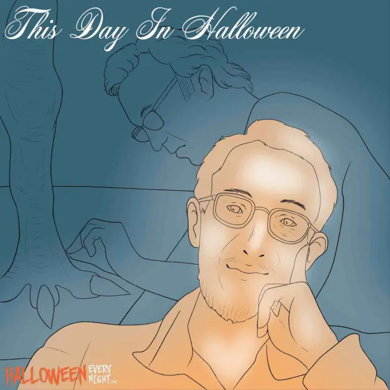 This Day in Halloween: Special makeup effects artist Stan Winston is born in Richmond, Virginia in 1946. / Illustration by Mikayla Webb.