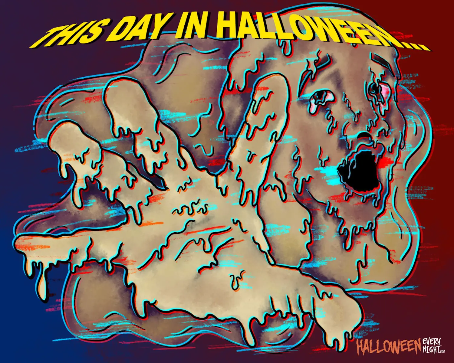 This Day in Halloween: Promoted as the first major studio color feature in 3D "House of Wax" premieres in New York City in 1953. / Illustration by Cheyenne Knehans