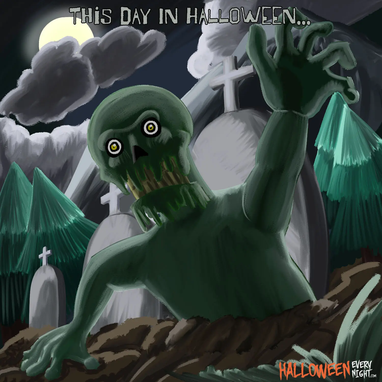 This Day in Halloween: Cult favorite zombie film "The Return of the Living Dead" opens across the U.S. in 1985. / Illustration by Alison Oliman.