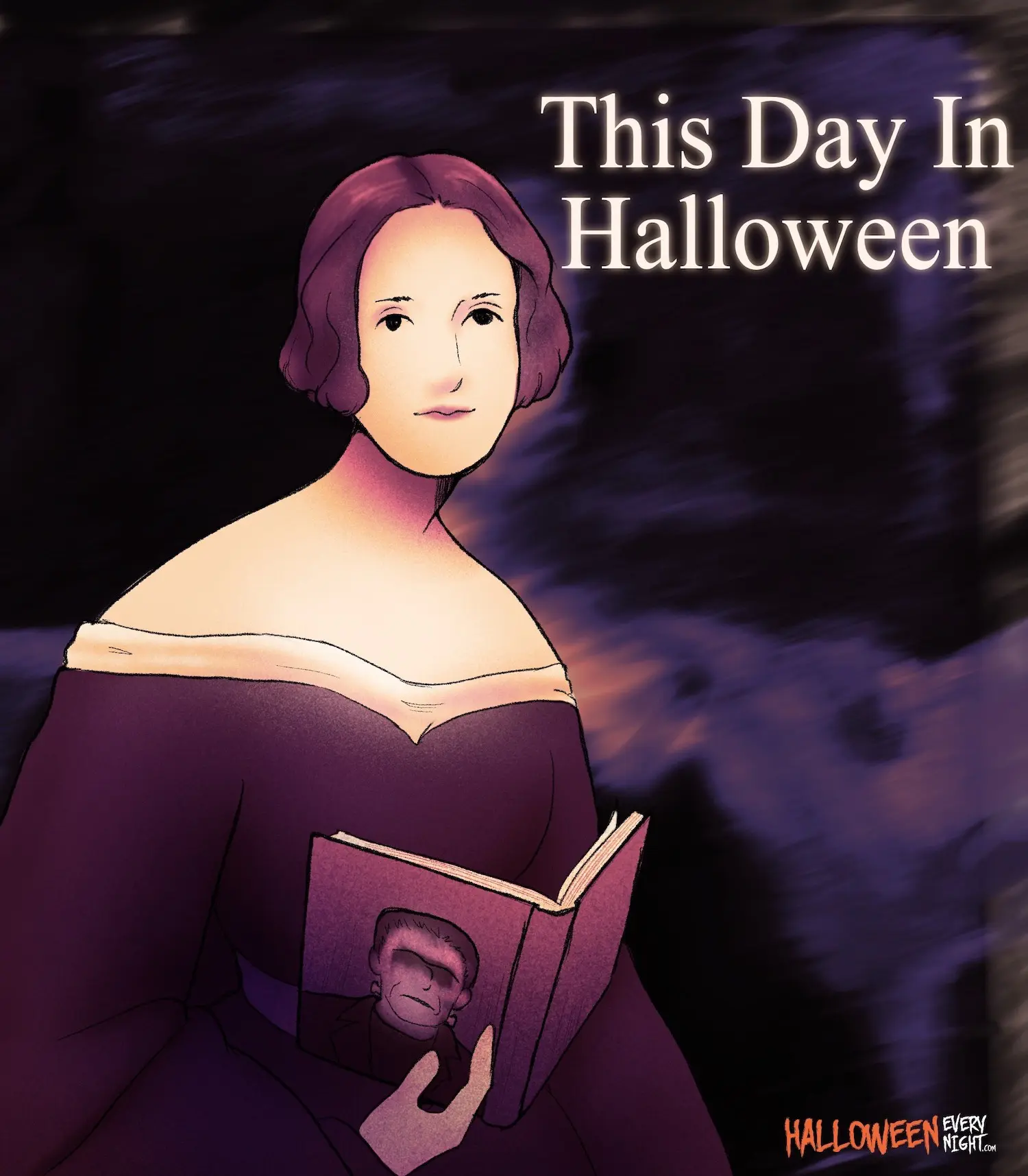 This Day in Halloween: "Frankenstein" author Mary Shelley is born Mary Wollstonecraft Godwin in London in 1797. / Illustration by Leslie Rodriguez