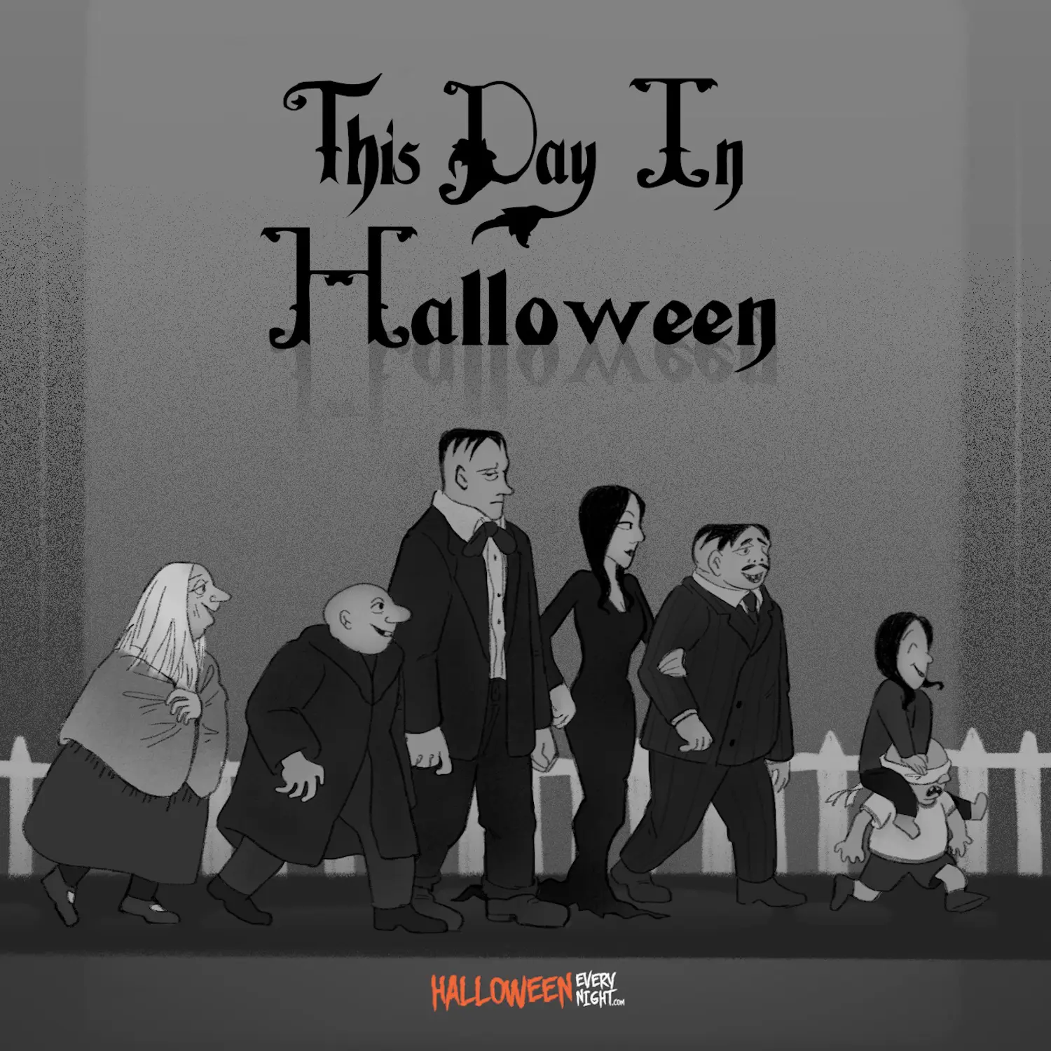 This Day in Halloween: Cartoonist Charles Addams' Addams Family characters appear for the first time in The New Yorker in 1938. / Illustration by Lee Ernest