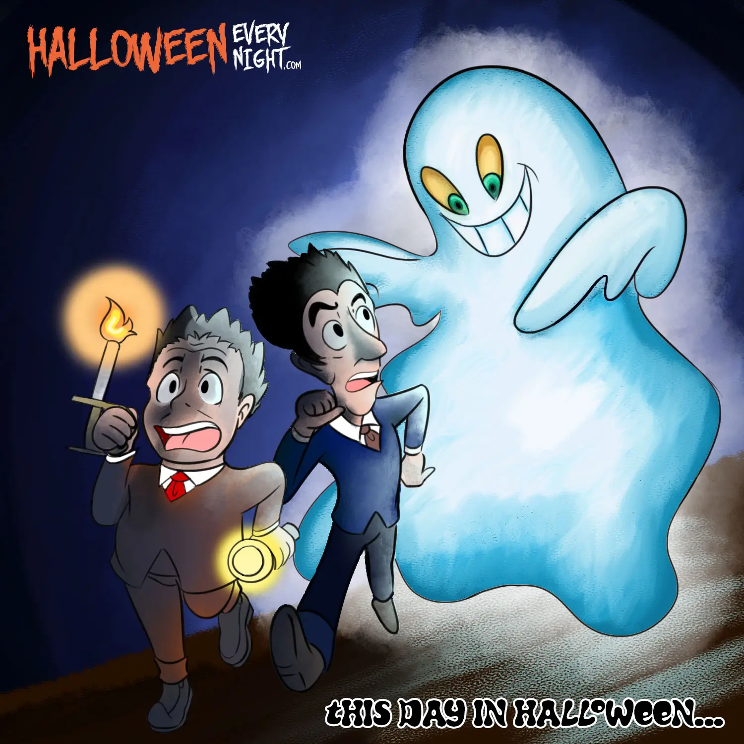 This Day in Halloween: Abbott and Costello's horror comedy "Hold That Ghost" opens across the U.S. in 1941. / Illustration by Alison Oliman.