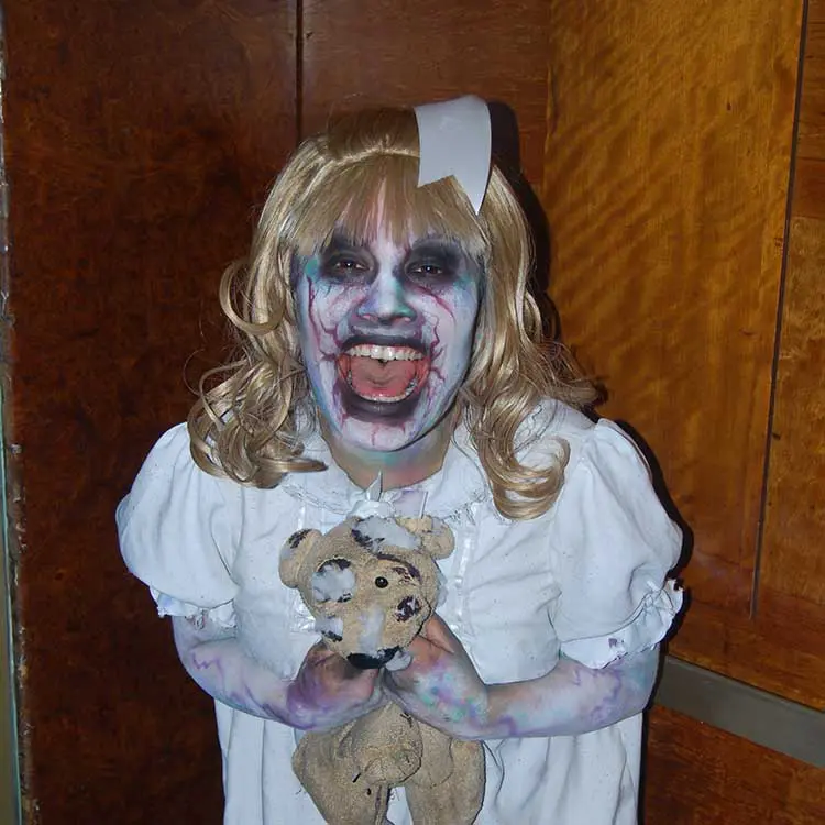 Scary Mary is our youngest spirit at Dark Harbor. Although our character and her story are fictional, she is inspired by a real legend. Scary Mary is based on a young spirit that is known to haunt The Queen Mary’s first class poolroom. When The Queen Mary was an active cruise liner traveling the Atlantic, it was reported there was a [young] girl of about 9 years old who tragically drowned in the pool. Since the ship docked in Long Beach in 1968, there have been countless reports of guests hearing a young child giggle. Women who have come through the poolroom have reported the feeling of having their hair pulled. Orbs and child-like forms have appeared in photographs. Guests have claimed the feeling of being gently shoved as if in a game of tag. Some guests have even reported waking up to a ghostly child figure crying at the foot of their beds. We don’t know the details of the life of this spirit, but it is from these encounters we were inspired to bring to life, Scary Mary.