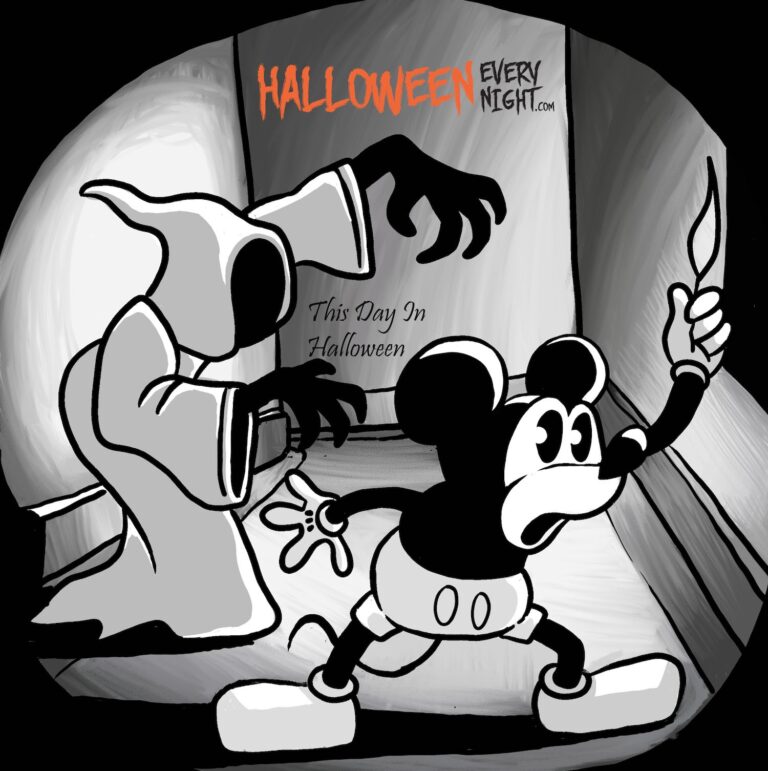 The Haunted House opens across the U.S. in 1929. The black and white short featuring dancing skeletons is the first of five Disney Mickey Mouse cartoons in the 1920’s, 1930s and later in the 1990s with a horror theme.