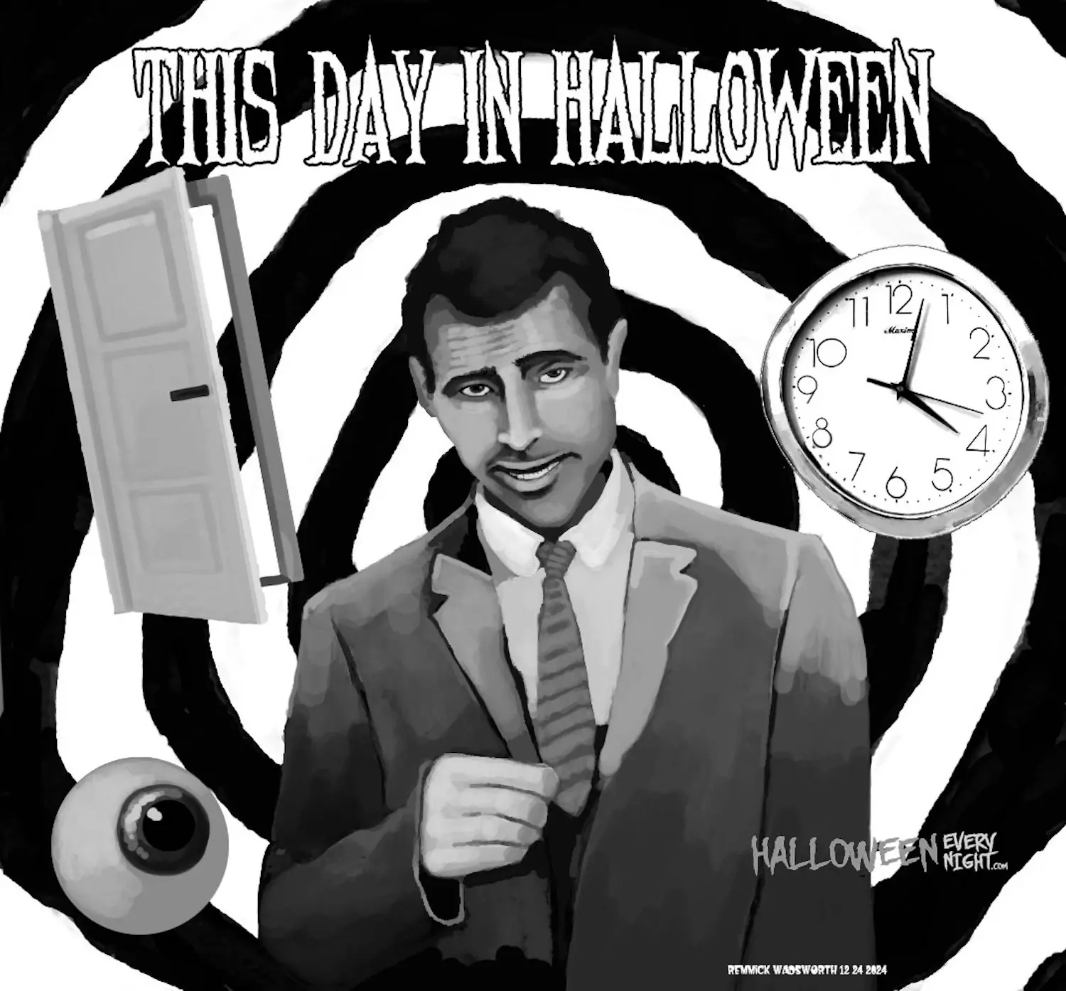 This Day in Halloween: "Twilight Zone" and "Night Gallery" creator and host Rod Serling is born in Syracuse, N.Y. in 1924. / Illustration by Remmick Wadsworth