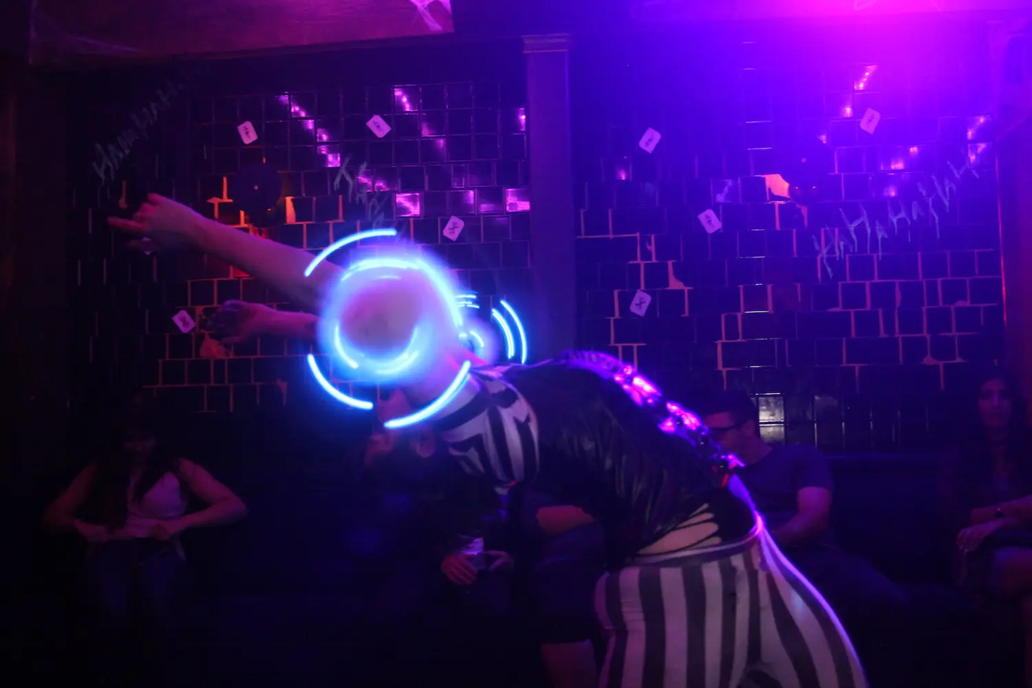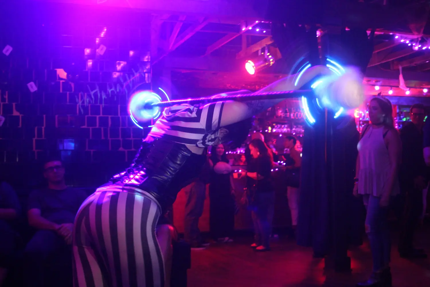 Freakshow performers and actors dressed as characters from Burton’s movies inhabit the place, entertaining diners and drinkers. Some just hang out. All photos by Jessica Peralta.
