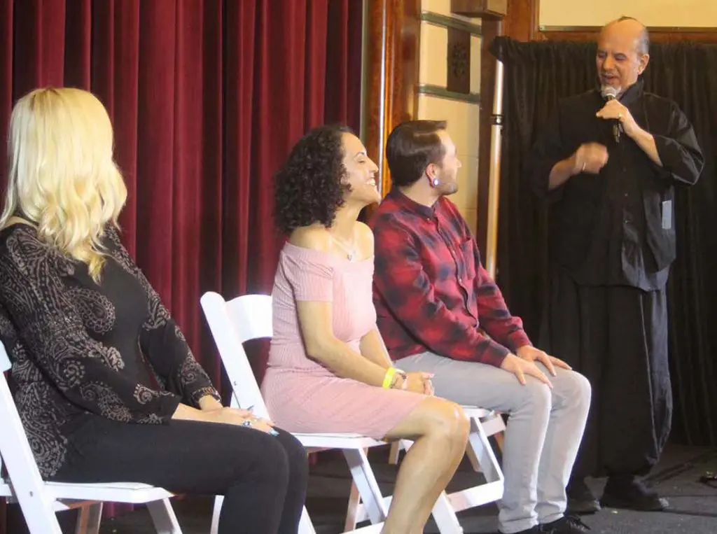Mentalist Max Maven does his thing at FantaSea. Photo by Jessica PeraltaKrystal Kurio starts off her show “light” by showing the audience how she can swallow a wire hanger. Photo by Jessica PeraltaKarl Koppertop performs magic for guests in the intimate setting of The Queen Mary’s Victoria Room. Photo by Jessica PeraltaMagician Jon Armstrong knows how to work the crowd with his sense of humor. Photo by Jessica PeraltaJoel Ward shows off his magic skills and hopefully doesn’t lose this woman’s wedding ring. Photo by Jessica PeraltaBartender Jack Morocco enthusiastically shares the art of bartending with guests. Photo by Jessica Peralta