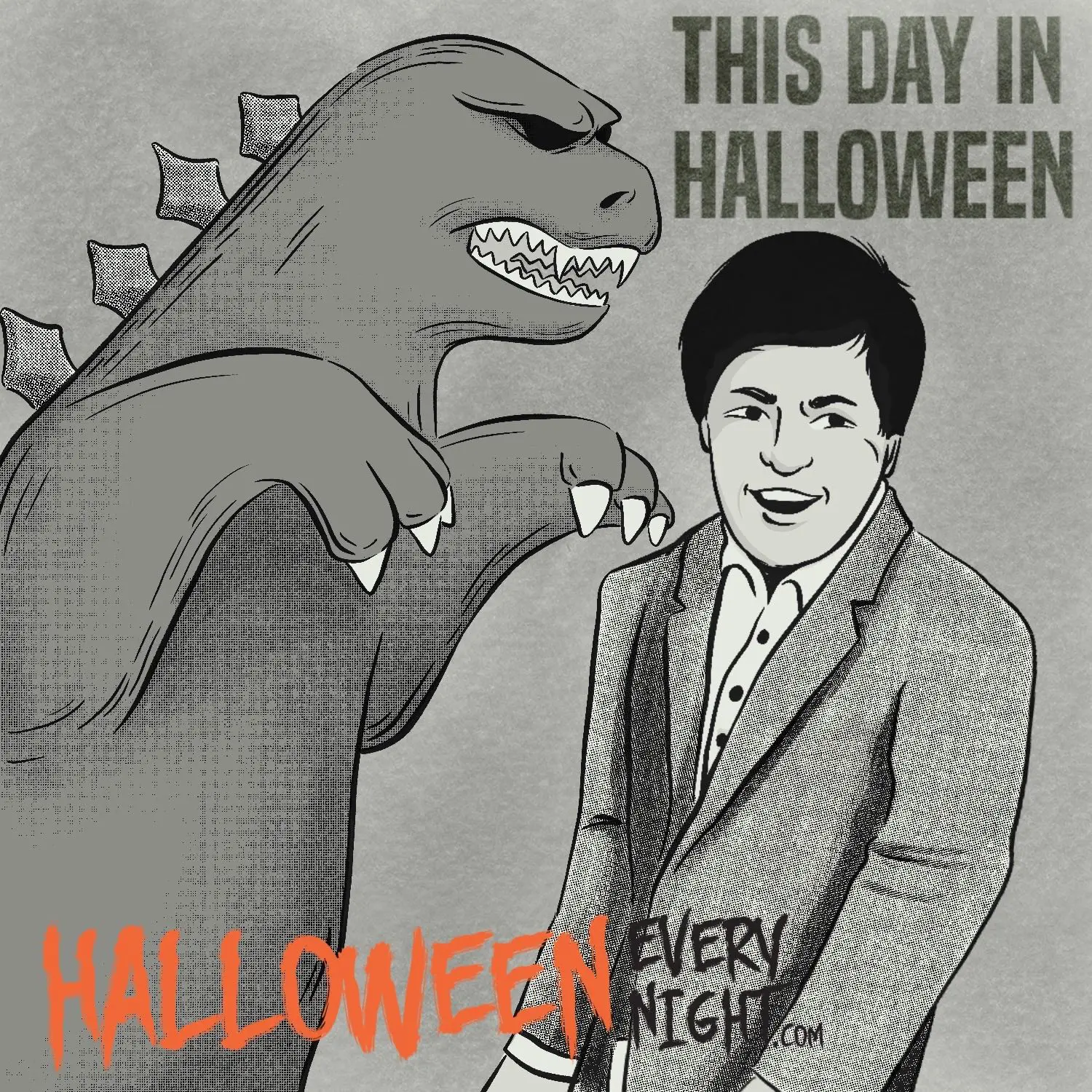 This Day in Halloween: Kaiju movie writer/director/producer Jun Fukuda is born either in Manshu, Korea or Changchun, China in 1923. / Illustration by Morgan Bryson