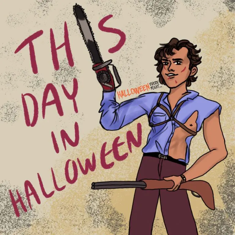 This Day in Halloween: The third film in Sam Raimi's "Evil Dead" trilogy "Army of Darkness" opens across the U.S. in 1993. / Illustration by Leah Provo
