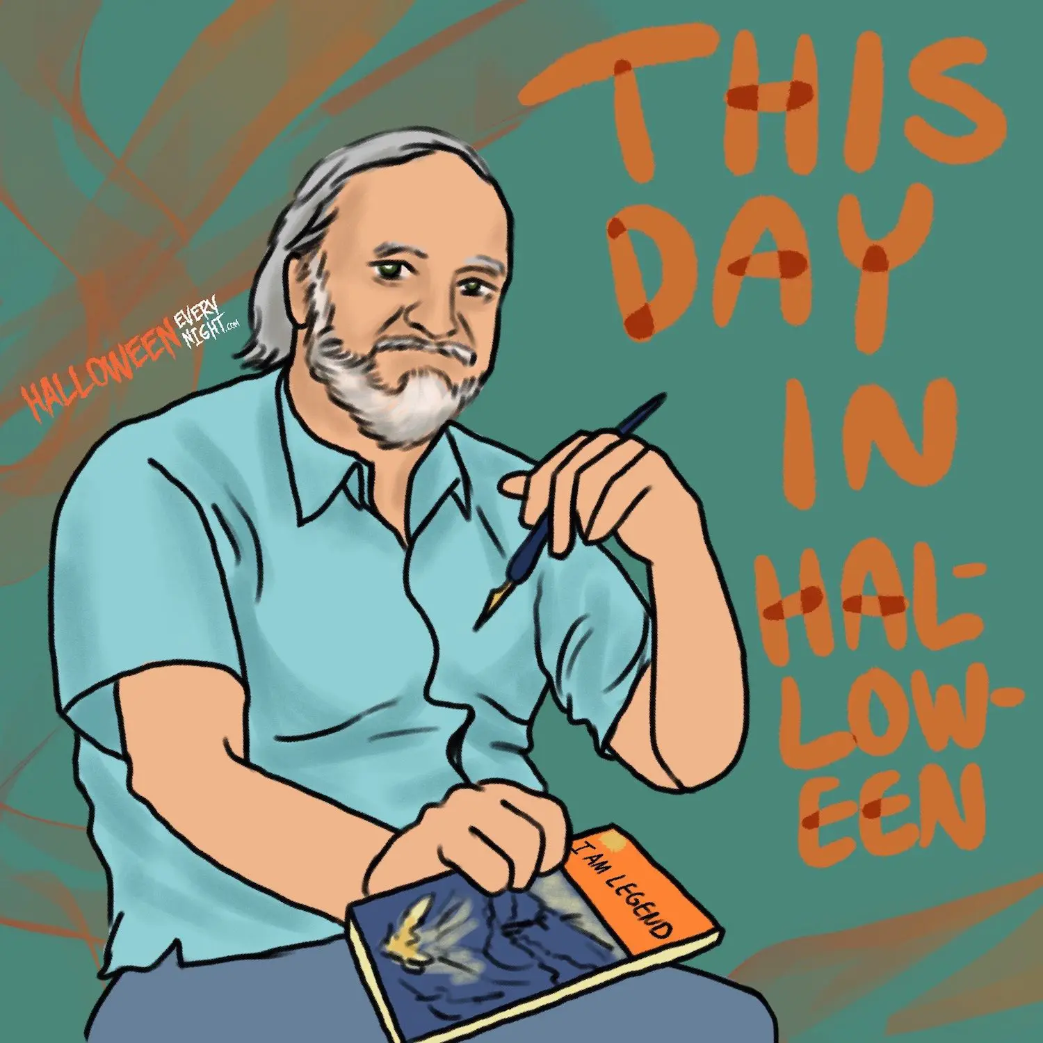 This Day in Halloween: Author and film and TV writer Richard Matheson is born in Allendale, New Jersey in 1926. / Illustration by Leah Provo