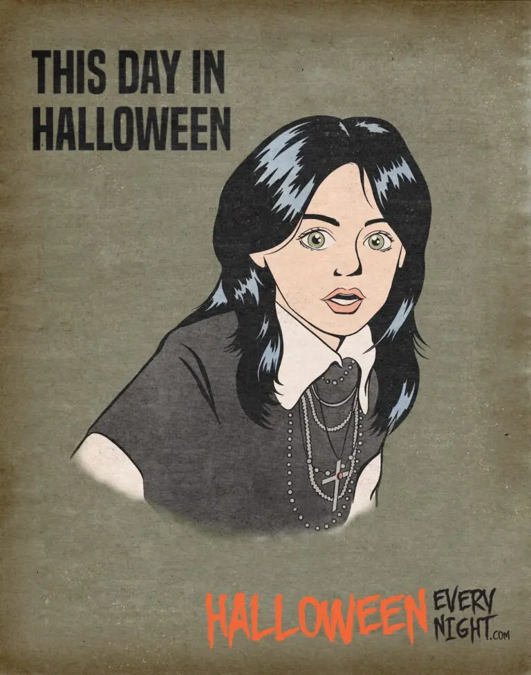 This Day in Halloween: British actress Pamela Franklin -- star of "The Legend of Hell House" -- is born in Yokohama, Japan in 1950. / Illustration by Morgan Bryson