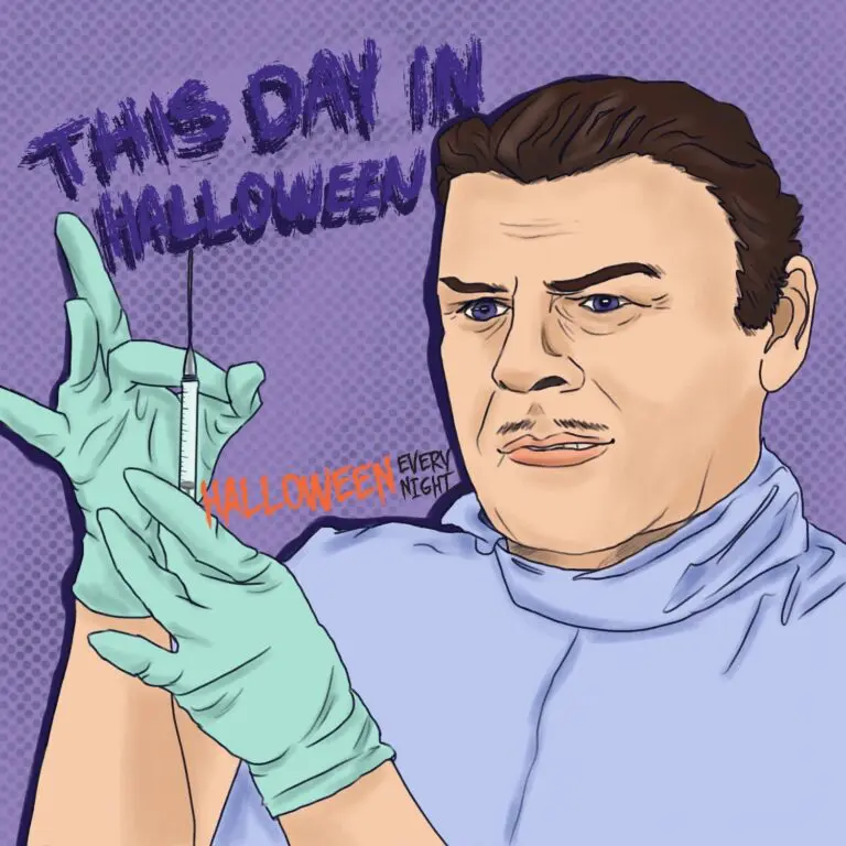 This Day in Halloween: Oscar-nominated actor -- and the original movie Prof. Quatermass --Brian Donlevy is born in Cleveland, Ohio in 1901. / Illustration by Leah Provo