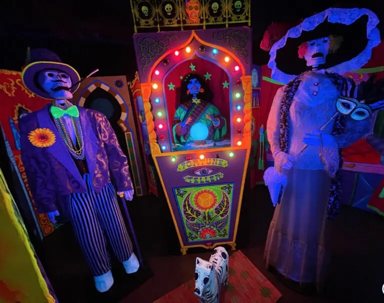 Halloween Every Night wanted to set a few things straight on the subject, so we chatted with artist George Newnam, who created the pop-up traveling exhibit Casa Calaveras in 1999. It’s a collection of colorful Dia de los Muertos art and story intended to engage as well as educate.