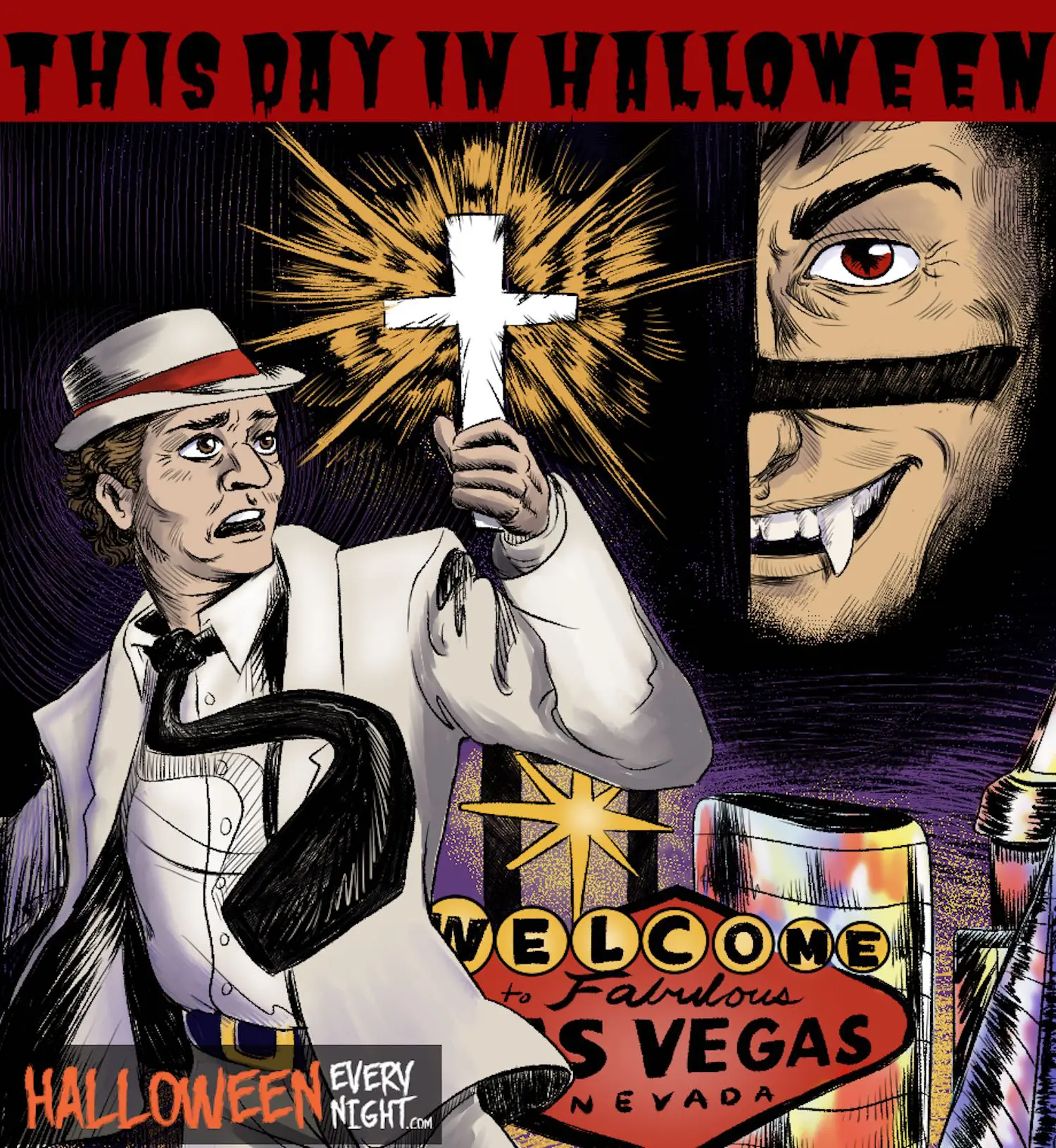 This Day in Halloween: Richard Matheson's influential "The Night Stalker" TV movie is broadcast on ABC in 1972. / Illustration by Caitlin Navo