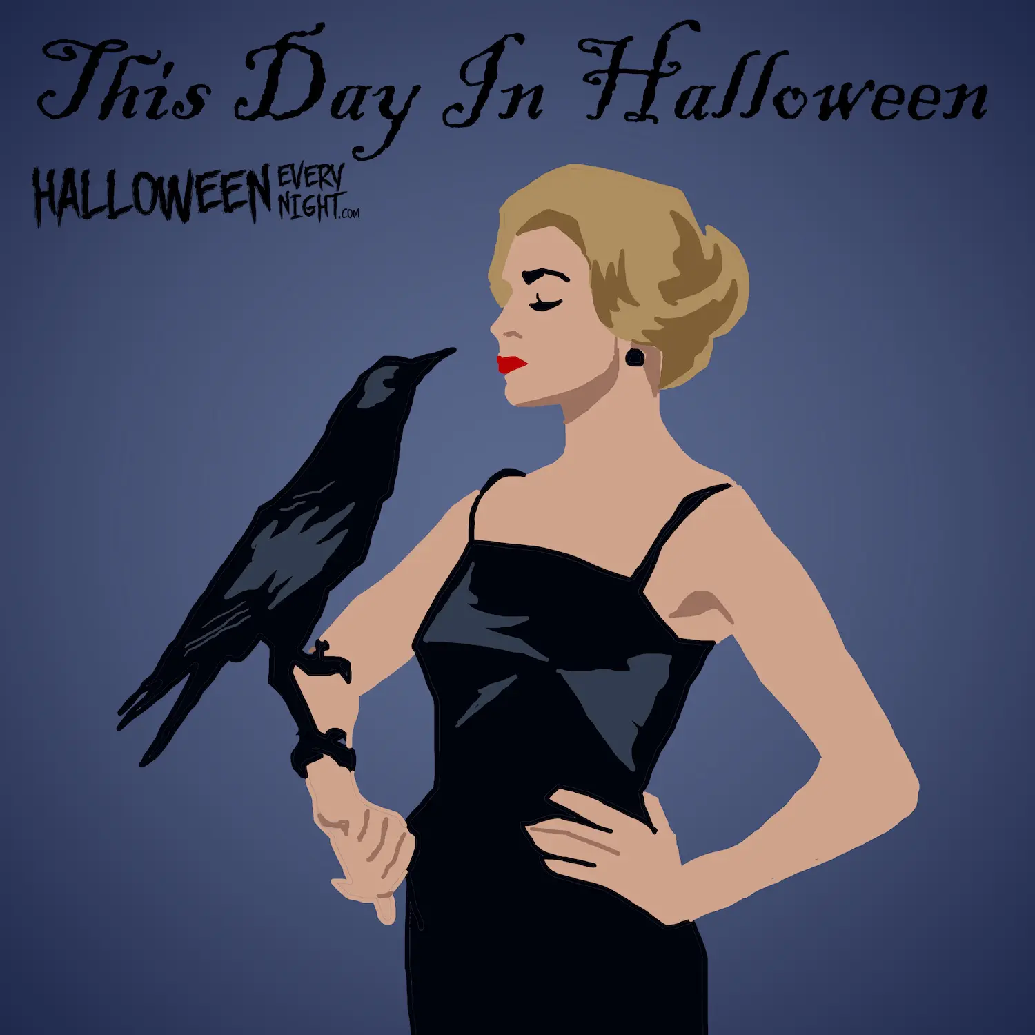 This Day in Halloween: Tippi Hedren -- star of Hitchcock's "The Birds" -- is born in New Ulm, Minnesota in 1930. / Illustration by Rana Barua