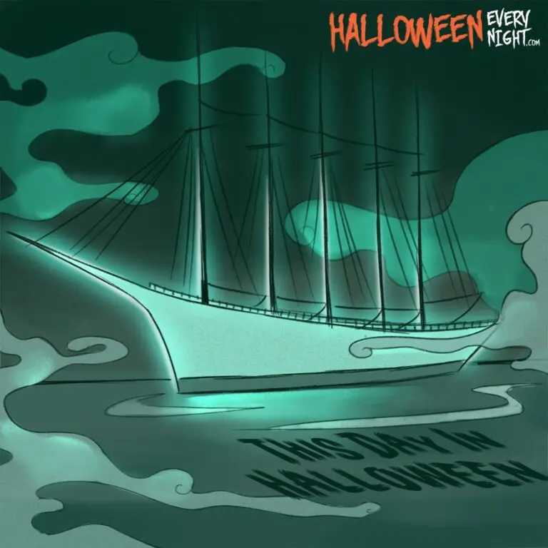 This Day in Halloween: The ghost ship Carroll A. Deering is sighted run aground off Cape Hatteras, NC in 1921. / Illustration by Dexter Urias