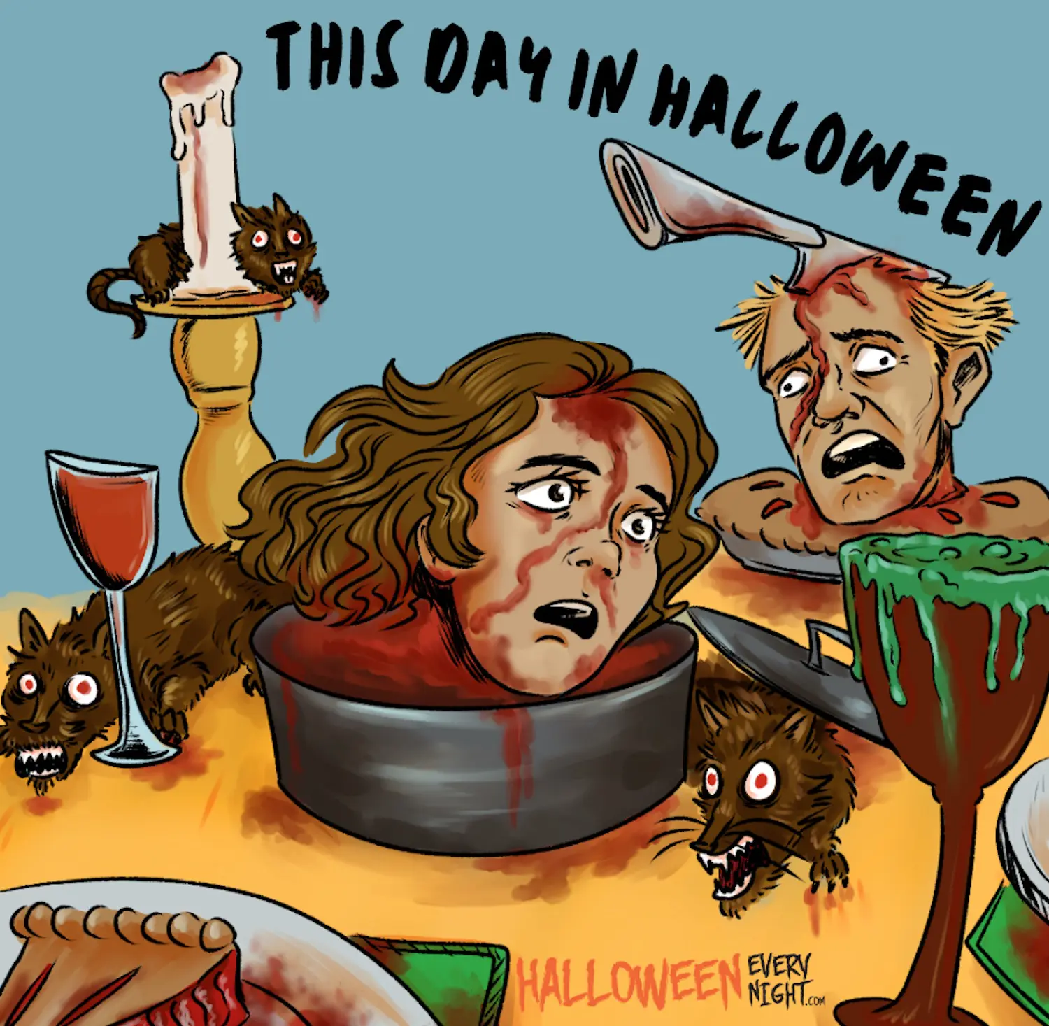 This Day in Halloween: Gore and sexploitation writer/director Andy Milligan is born in St. Paul, Minn. in 1929. / Illustration by Caitlin Navo