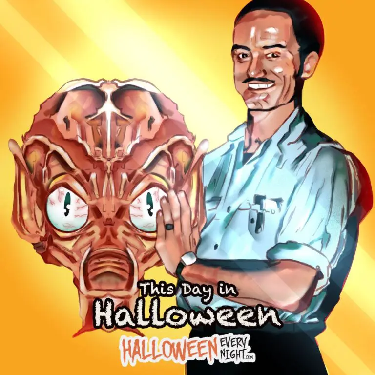 This Day in Halloween: Visual effects artist Paul Blaisdell -- designer of B-movie monsters -- is born in Newport, Rhode Island in 1927. / Illustration by Holly Vigil
