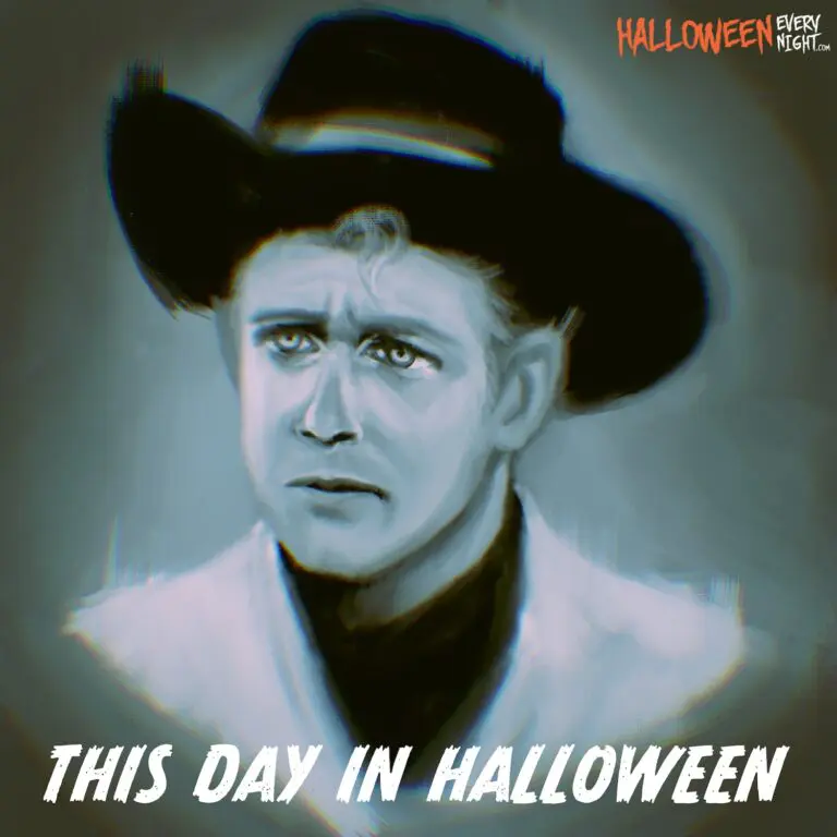 This Day in Halloween: Actor, stuntman and star of "Billy the Kid Versus Dracula" Chuck Courtney is born in Los Angeles in 1930. / Illustration by Deanna Lim