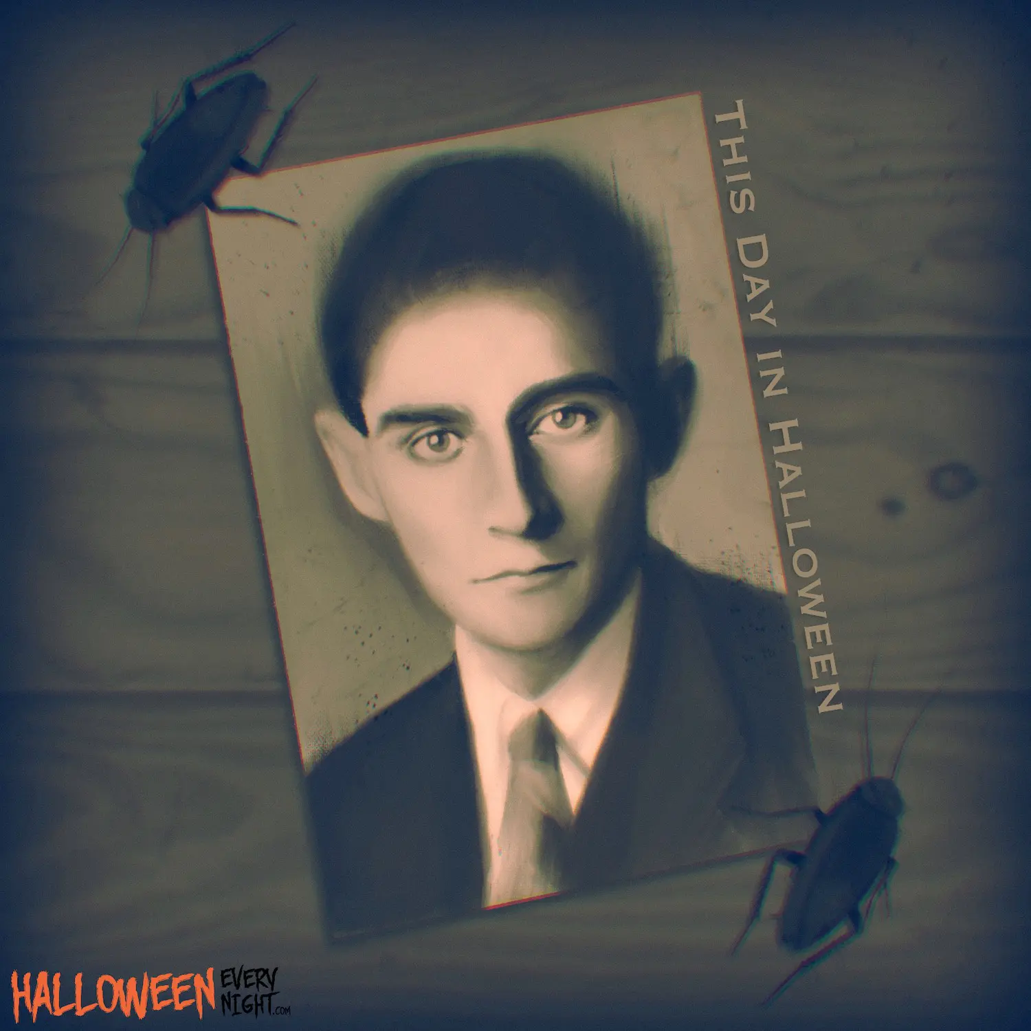This Day in Halloween: Lawyer-turned-influential-surrealist-writer Franz Kafka is born in Prague, Bohemia (now Czech Republic) in 1883. / Illustration by Deanna Lim