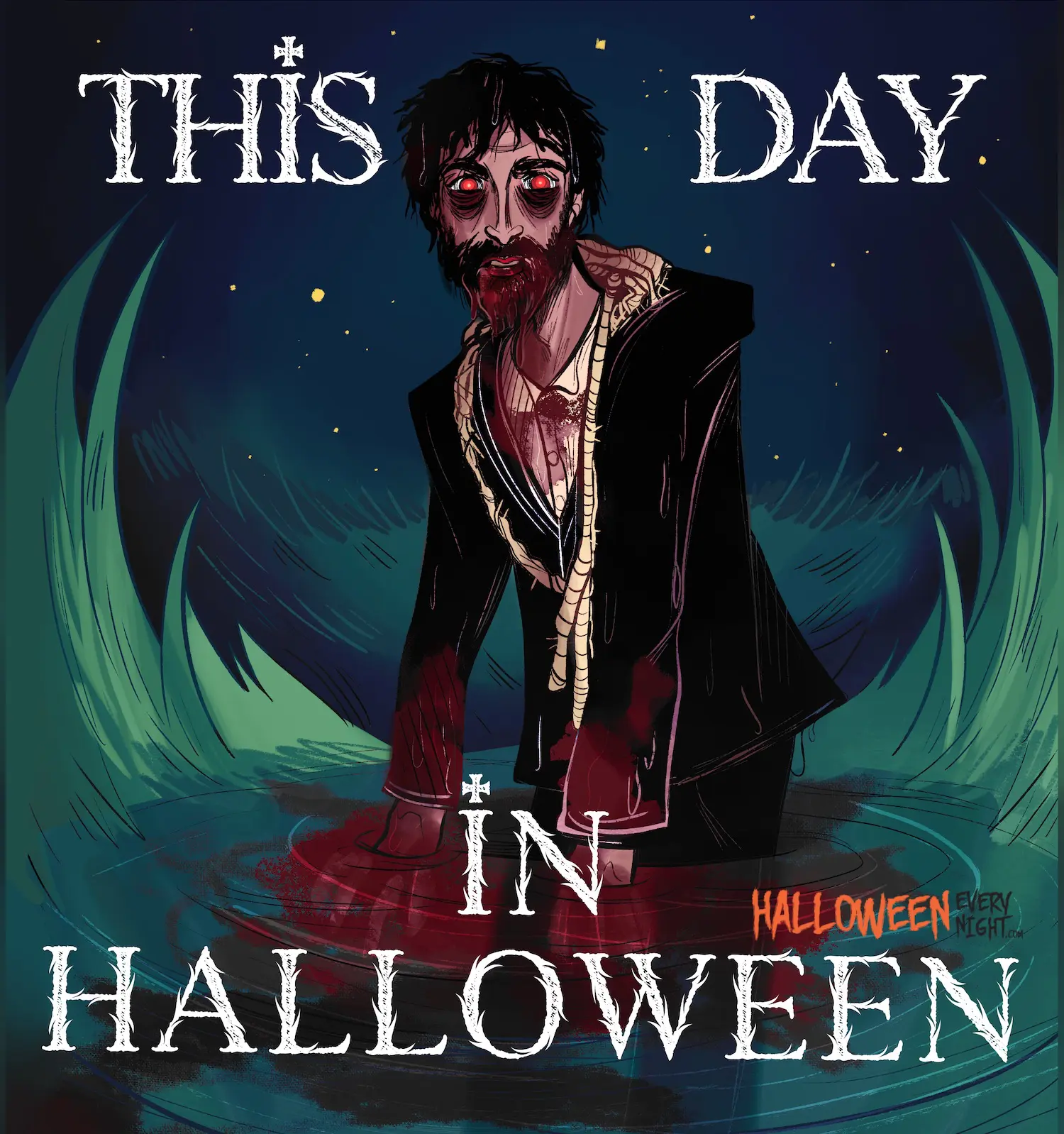 This Day in Halloween: The Spanish-Italian film "No profanar el sueño de los muertos" -- a.k.a. "The Living Dead in Manchester Morgue" -- opens across the U.S. in 1975. / Illustration by Quinn Moody