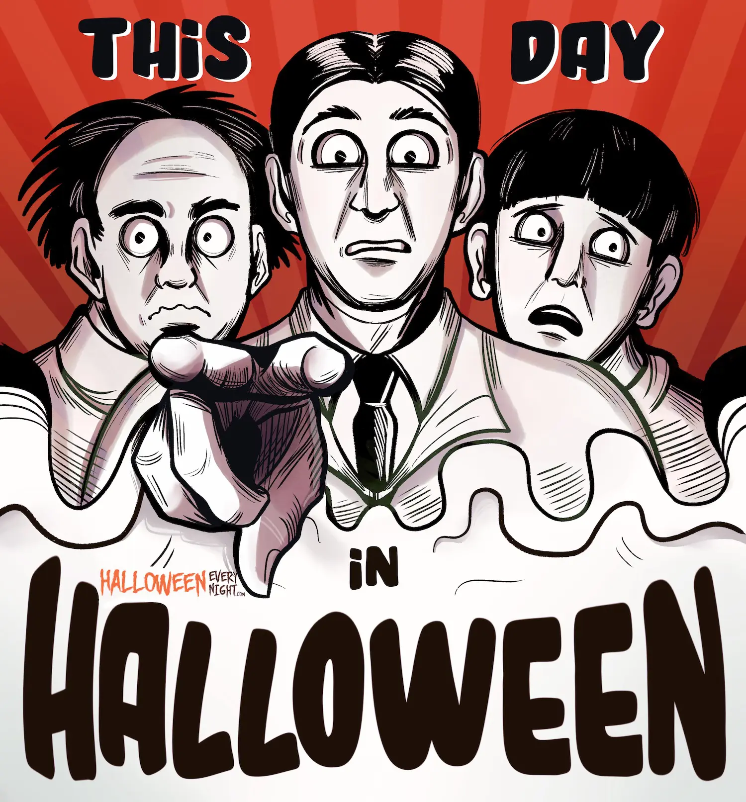 This Day in halloween: Three Stooges short "Spooks!" -- the first of two shot in 3D -- opens across the U.S. in 1953. / Illustration by Quinn Moody