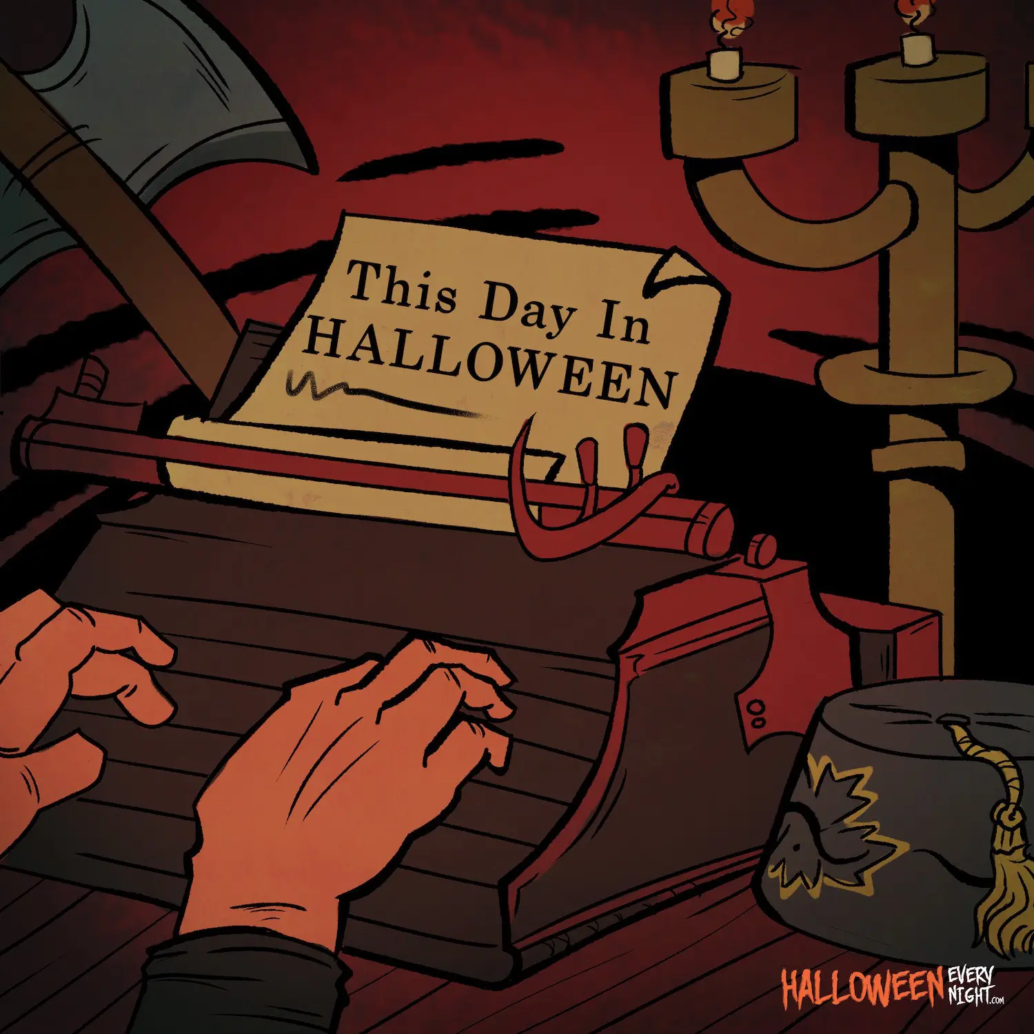 This Day in Halloween: "The House of the Long Shadows" featuring Vincent Price, Peter Cushing and Christopher Lee opens in the U.K. in 1983. / Illustration by Eiloh Virgo