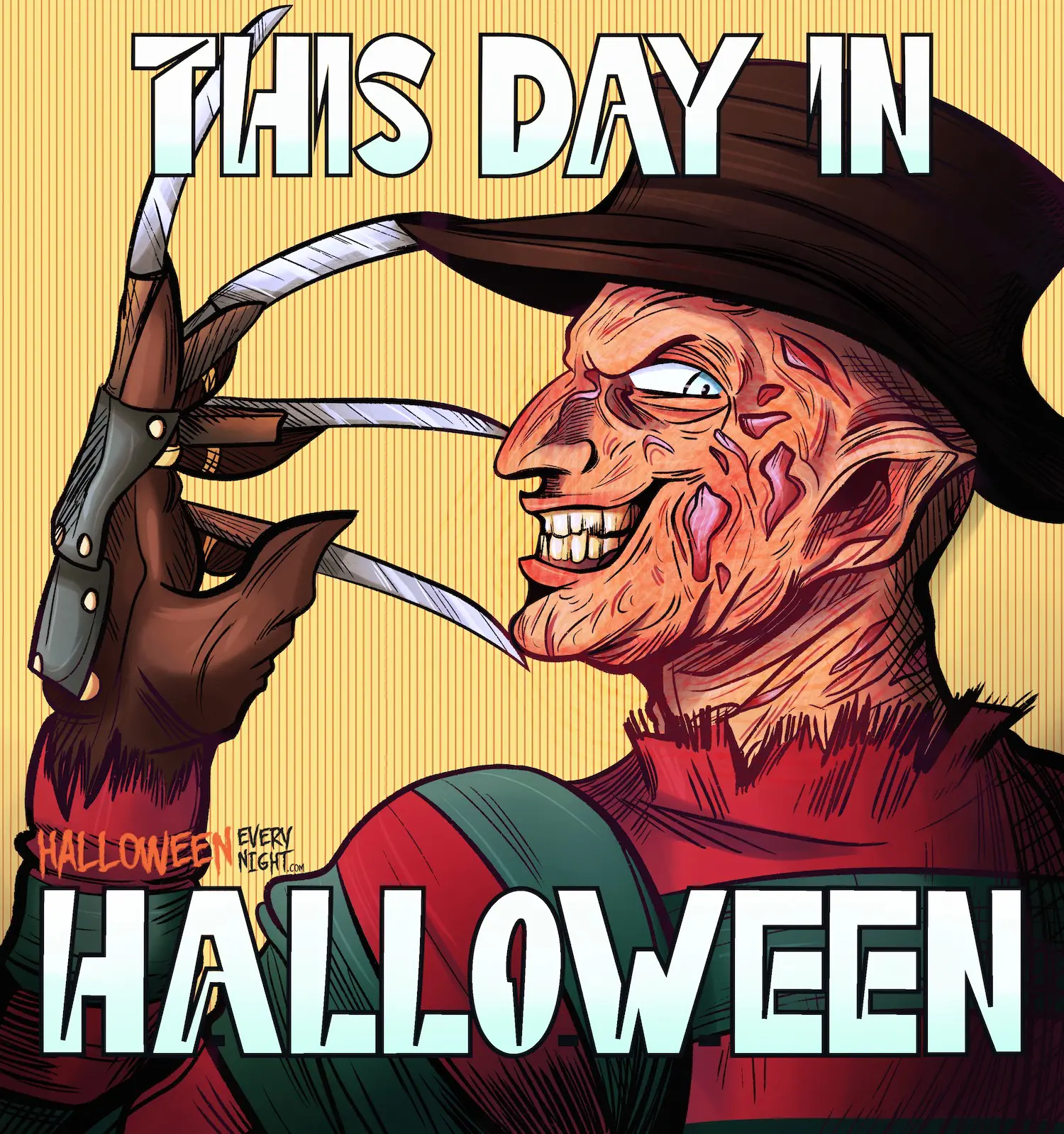 This Day in Halloween: Actor Robert Englund -- a.k.a. Freddy Krueger -- is born in Glendale, California in 1947. / Illustration by Quinn Moody
