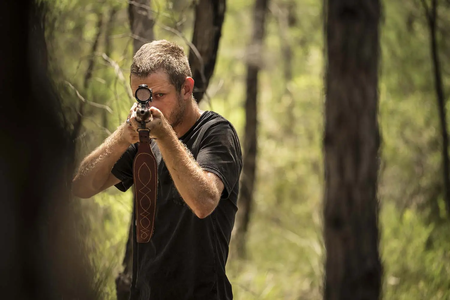 If there is one word to encapsulate Killing Ground, it would be “bleak.” Thanks in part to its wilderness setting, a majority of the film’s shots consist mostly of empty space – when a character does appear in frame, the viewer’s gaze is drawn to them because of the stark emptiness around them. The hyper-detailed shots of nature that intercut the film, while technically beautiful, are purposefully undercut by the cold desaturation that infuses every image.