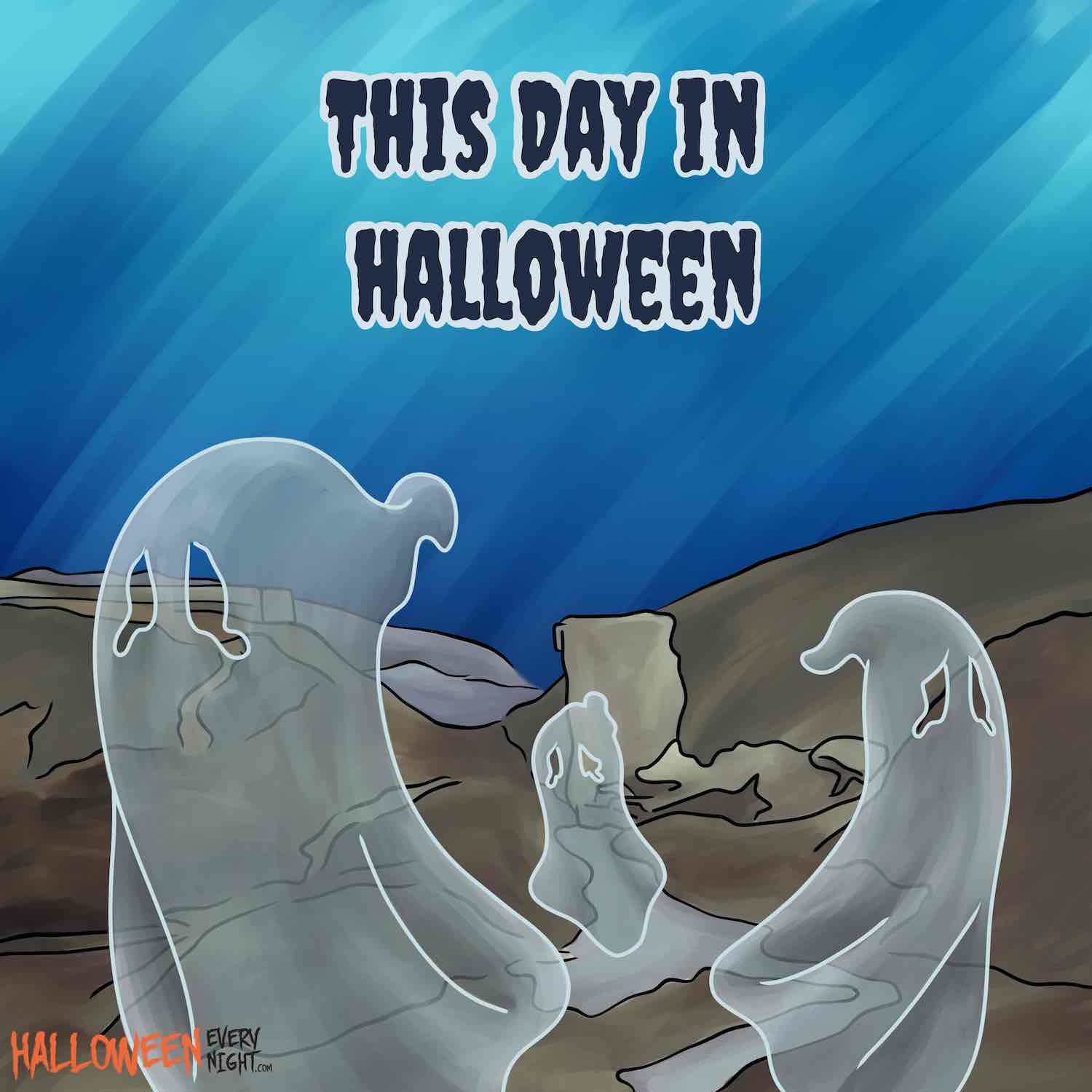 This Day in Halloween: The St. Francis Dam breaks in Santa Clarita, Calif. in 1928, killing more than 400 people. The ghosts of the victims — as well as the sound of water — is allegedly still a common sight and sound in the valley. / Illustration by Jocelyne Reyes.