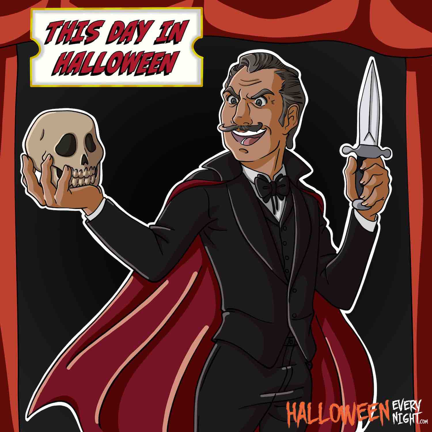 This Day in Halloween: Theatre of Blood starring Vincent Price premieres in Toronto, Canada in 1973. / Illustration by Jocelyne Reyes.