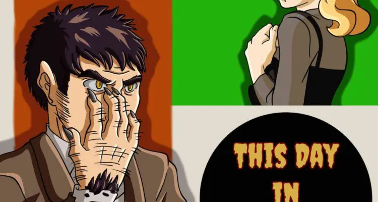 Phantom of the Rue Morgue opens across the U.S. in 1954. One of the string of 3D films made during the “Golden Age” of 3D in 1952-1955 and is based on Edgar Allan Poe’s Murders in the Rue Morgue and essentially a remake of the 1932 Bela Lugosi film. Rarely seen now, but a big hit on its release.
