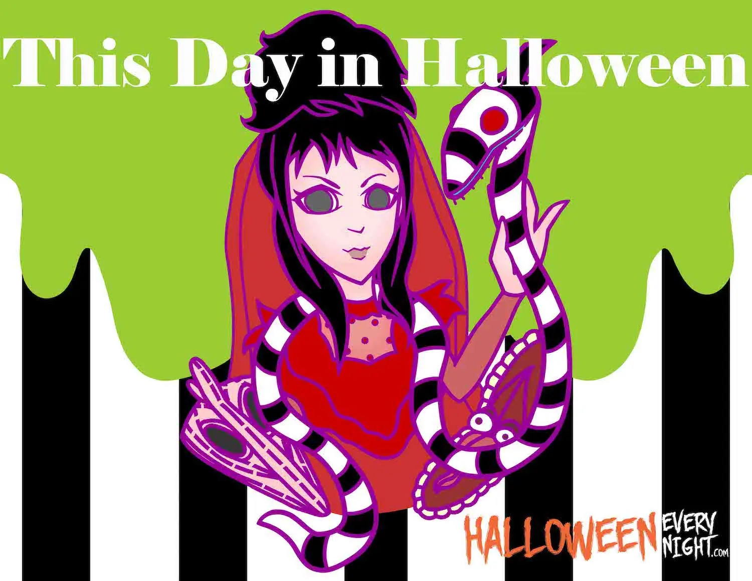 This Day in Halloween: Tim Burton's horror comedy classic "Beetlejuice" -- starring Winona Ryder -- opens across the U.S. in 1988. / Illustration by Alexandria Howard