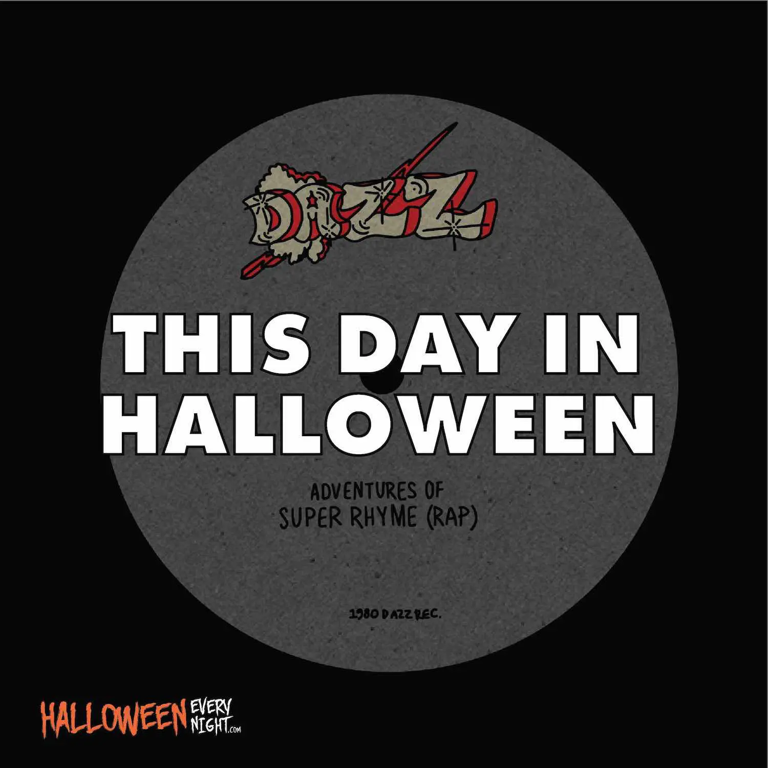 This Day in Halloween: First horrorcore rap song Jimmy Spicer’s “Adventures of Super Rhyme” is released by Dazz Records in 1980. / Illustration by Angela Smith
