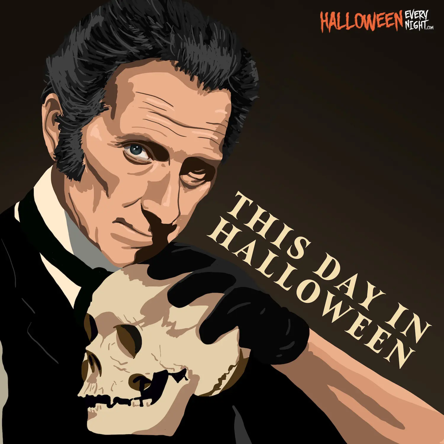This Day in Halloween: British icon and Hammer Films horror star Peter Cushing is born in Kenley, England in 1913. / Illustration by Haley Underwood