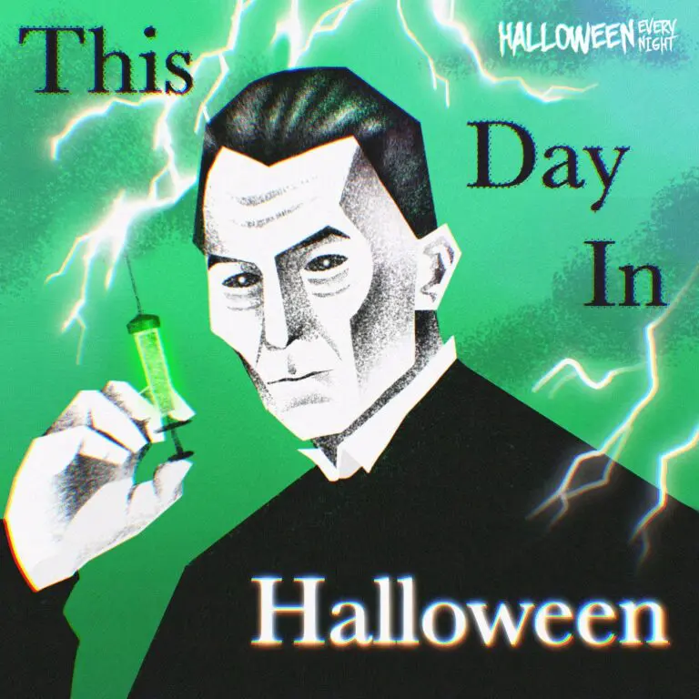 This Day in Halloween: Iconic Hammer horror and original "Star Wars" star Peter Cushing is born in Kenley, England in 1913. / Illustration by Amelia Stebbing