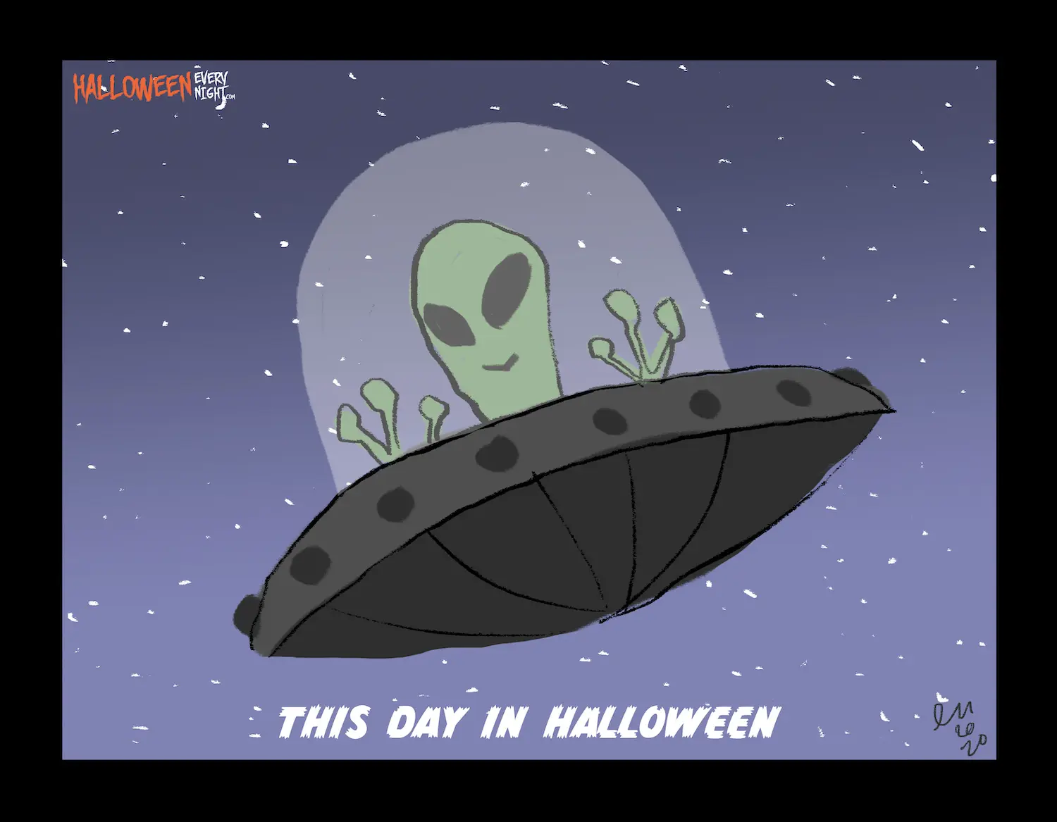 This Day in Halloween: Pseudo-documentary "Unidentified Flying Objects: The True Story of Flying Saucers" opens across the U.S. in 1956. / Illustration by Ari Fuyumuro