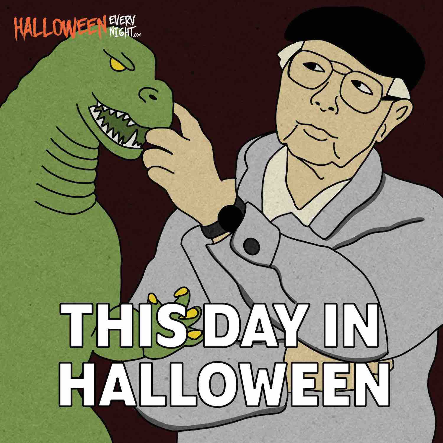 This Day in Halloween: Kaiju movie writer-director Ishiro Honda is born in Yamagata Prefecture, Japan in 1911. / Illustration by Angela Smith