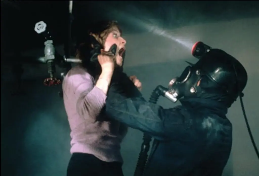 The unique premise of a Valentine’s day tragedy, combined with incredible gore (even despite MPAA attempts to tame it) keeps the film discussed by fans. Kills like bad guy The Miner slamming a pickaxe through the bartender’s mouth and out his left eye would have left families fainting if the more explicit version were allowed in its theatrical release. Other envelope-pushing moments include The Miner slamming Sylvia’s skull into a shower rod as bloody water shoots out of the spout connected to her head, and late in the film, Mabel slips her burnt face out of the dryer in a chilling visual that made the theatrical release.