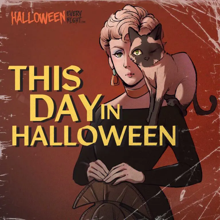 This Day in Halloween: "Bell, Book and Candle" -- starring Kim Novak and Jimmy Stewart of "Vertigo" -- premieres in Los Angeles in 1958. / Illustration by Alyssa Fujiwara