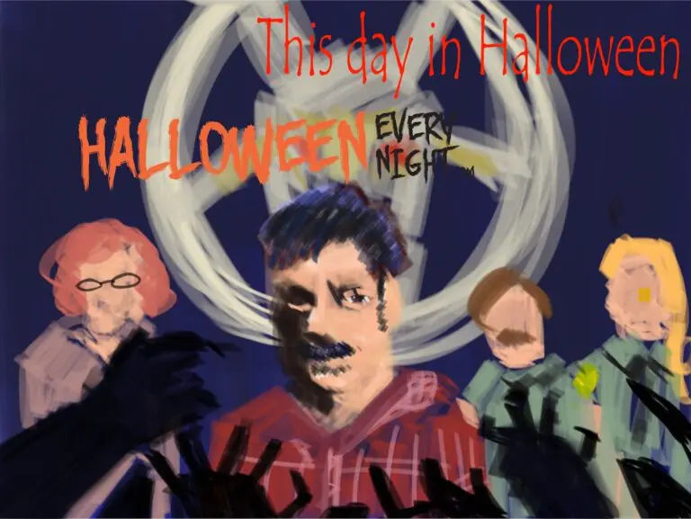 This Day in Halloween: Horror comedy "Stan Against Evil" premieres on IFC in 2016. / Illustration by Melissa Kim