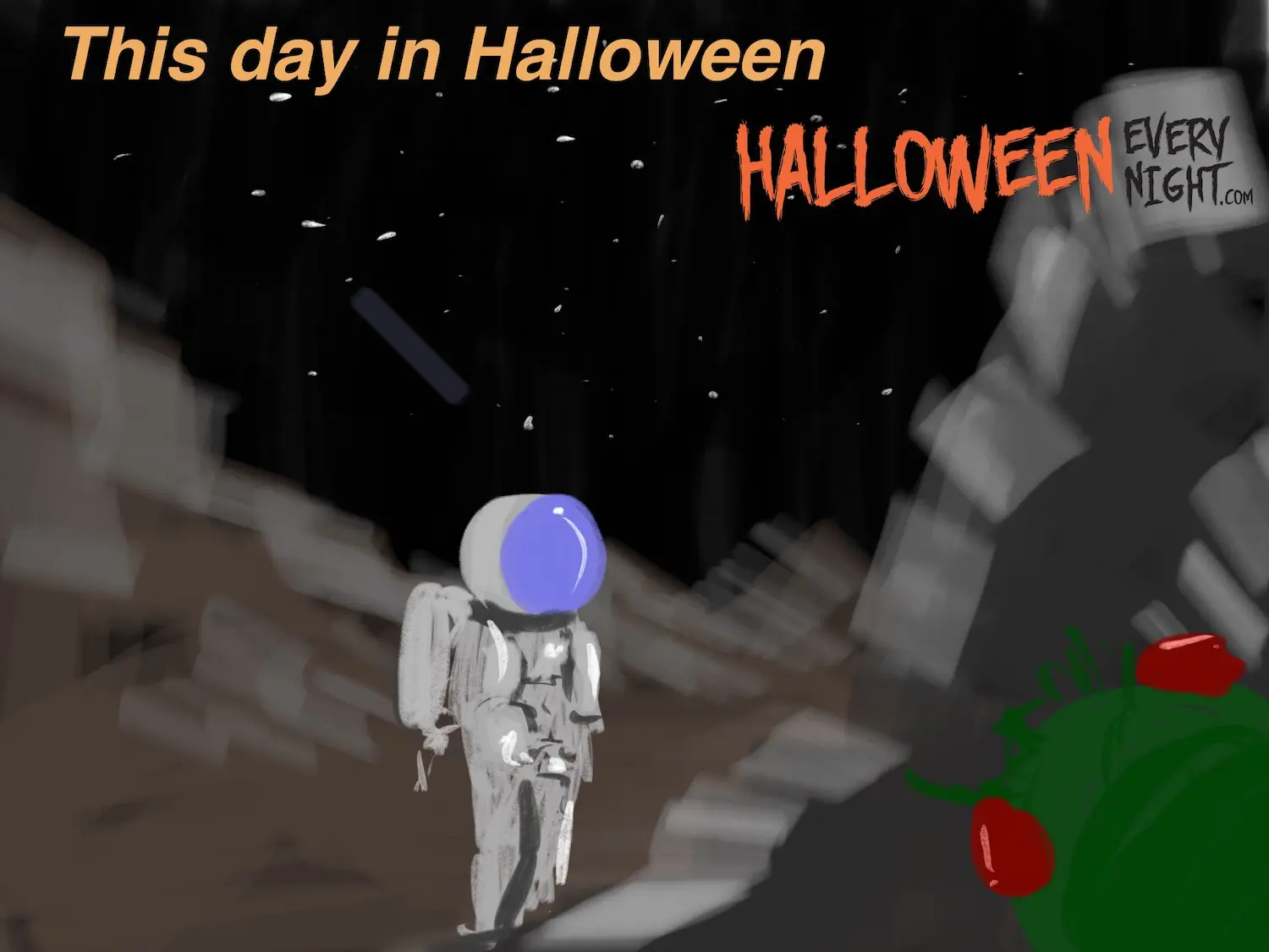 This Day in Halloween: "First Men in the Moon" -- featuring the stop-motion animation of Ray Harryhausen -- is released in the U.S. in 1964. / Illustration by Melissa Kim