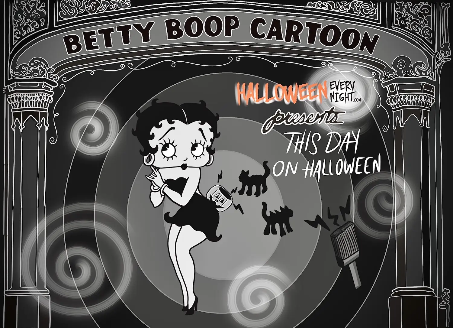 This Day in Halloween: Black and white musical cartoon "Betty Boop’s Hallowe’en Party" opens as an animated short in 1933. / Illustration by Sarah Ryan