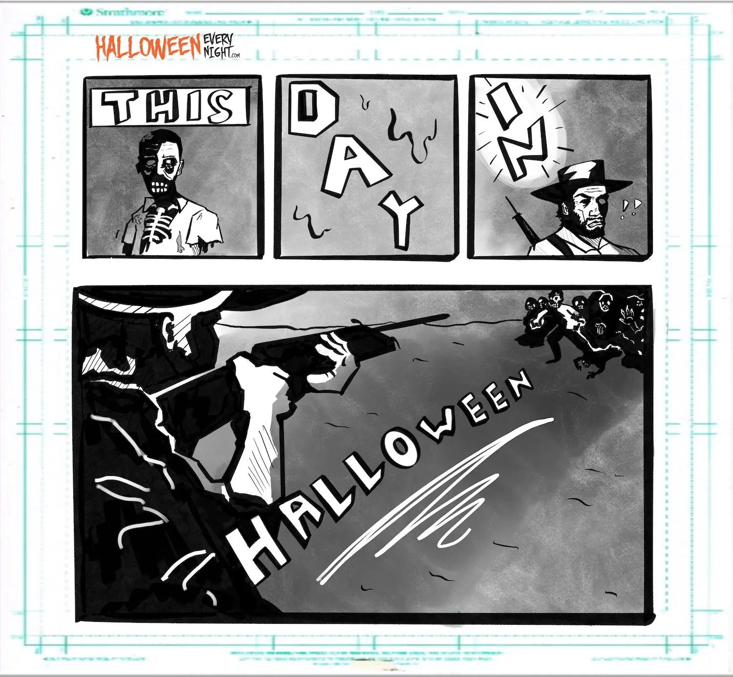 This Day in Halloween: The first issue of the iconic zombie apocalypse comic series "The Walking Dead" is published by Image Comics in 2003. / Illustration by Brooke Ramirez
